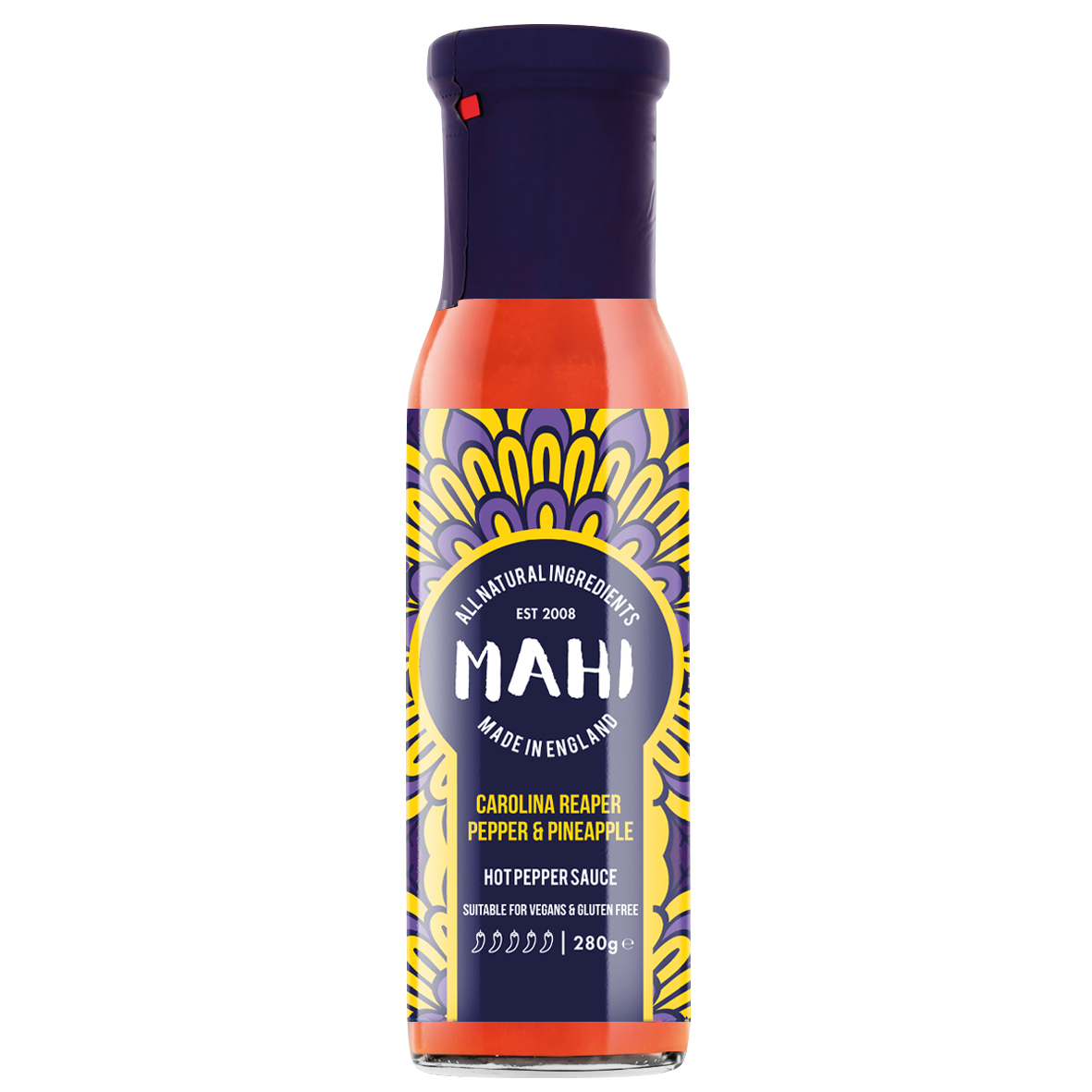 Diese Hot Sauce wird aus den rekordverdächtig scharfen Carolina Reaper Chilischoten hergestellt, einer der schärfsten Chilis der Welt. Verfeinert mit dem süßen Fruchtfleisch köstlicher, sonnengereifter Ananas, sorgt diese Sauce für ein Geschmackserlebnis, das sowohl scharf als auch fruchtig-süß ist. Achtung: Diese Sauce ist extrem scharf und nur für diejenigen geeignet, die wirklich feurige Schärfe lieben!