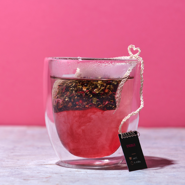 Dieser Wellness-Tee kombiniert die fruchtigen Aromen von Holunderbeeren und Hibiskus mit dem natürlichen Geschmack von Kirschen. Ein fruchtig-leichter Tee, der erfrischende Entspannung bietet.