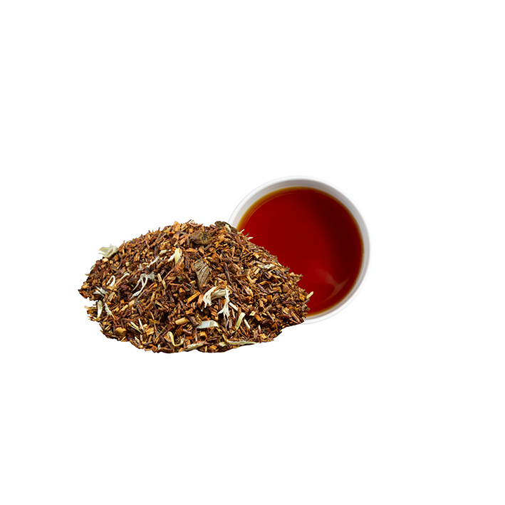 Rooibos, natürliches Aroma (Vanillearoma), Vanillestücke, Sahnearoma, Orangenöl (natürliches Orangenaroma), Kornblume.