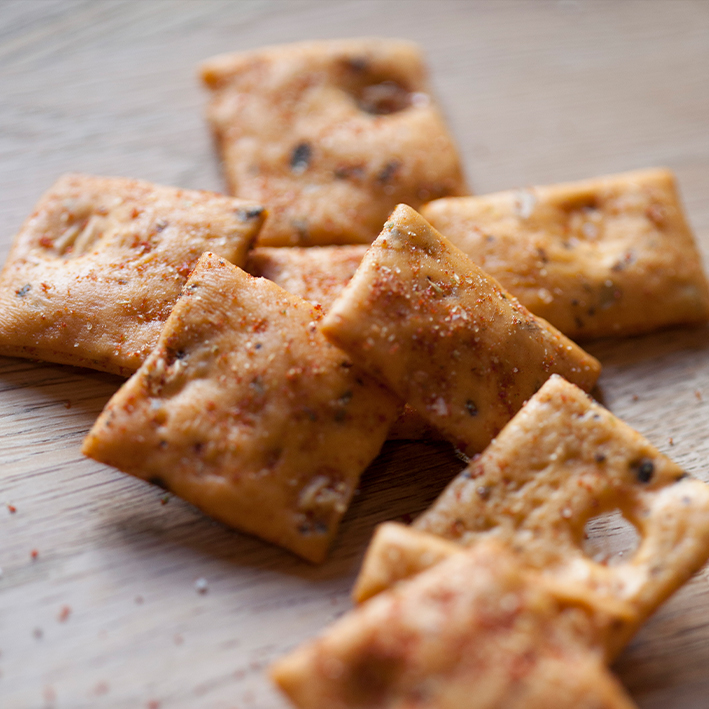 Knusprige Salzgebäcke, die mit Olivenöl und Basilikum verfeinert sind. Die Kräuter und Gewürze sorgen für einen mediterranen Geschmack, der ideal zu einem Glas Wein oder als Snack zwischendurch passt.