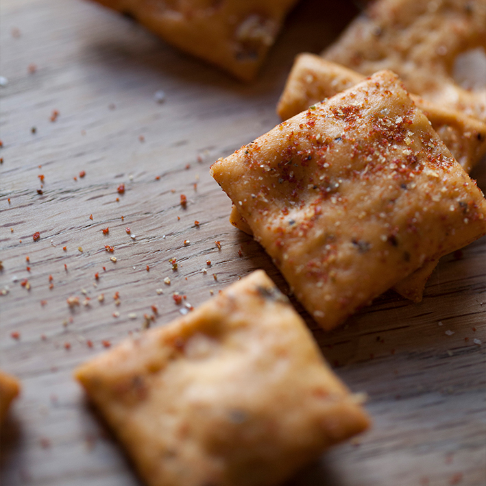 Feinste Salzgebäcke aus Hartweizengrieß, veredelt mit Olivenöl, aromatischen Gewürzen und Kräutern. Sie sind nicht frittiert, sondern knusprig ausgebacken und mit Tomate und Oregano fein abgeschmeckt. Ein mediterraner Snack für zwischendurch.