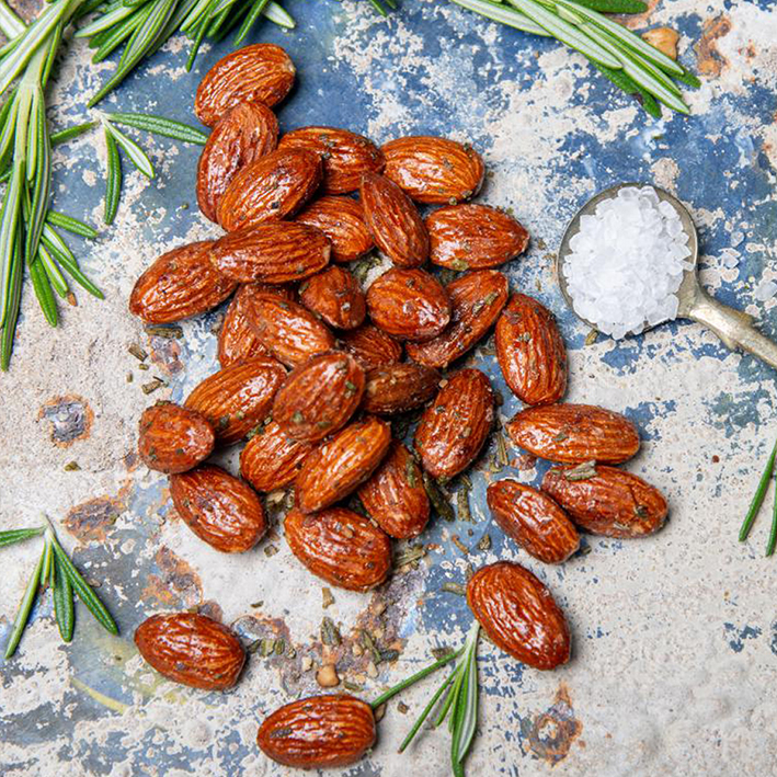 Feinste Mandeln, leicht mit Zucker bestäubt und mit frischem französischem Rosmarin verfeinert. Diese exquisite Kombination aus süßen und herzhaften Noten sorgt für ein unvergessliches Geschmackserlebnis und ist ein wahrer Genuss für alle Sinne.