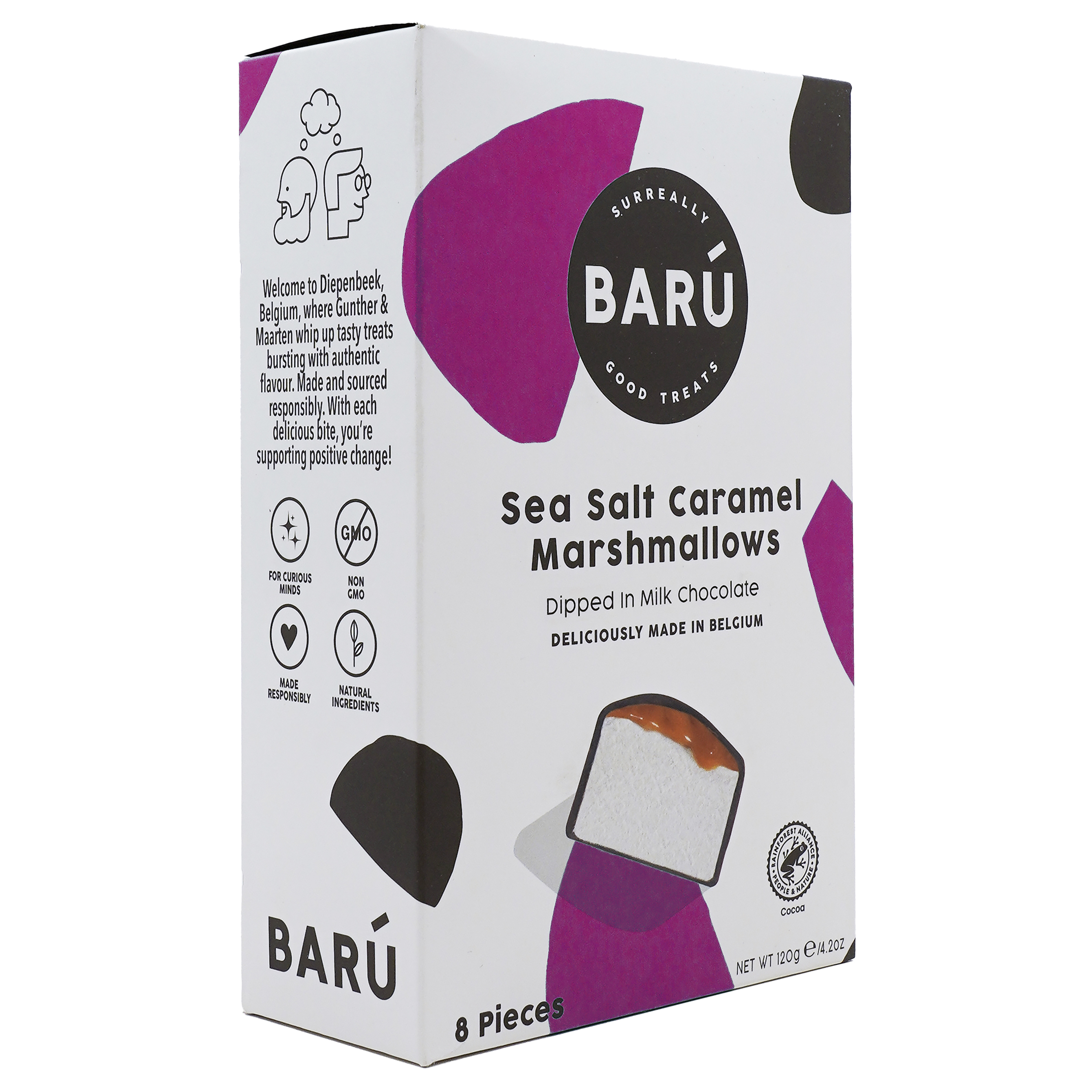 Diese Marshmallows mit dem Geschmack von gesalzenem Karamell sind von zarter belgischer Milchschokolade umhüllt. Ihre knackige Hülle und das cremige, weiche Innere bieten ein außergewöhnliches Genusserlebnis für alle Liebhaber süß-salziger Kombinationen.