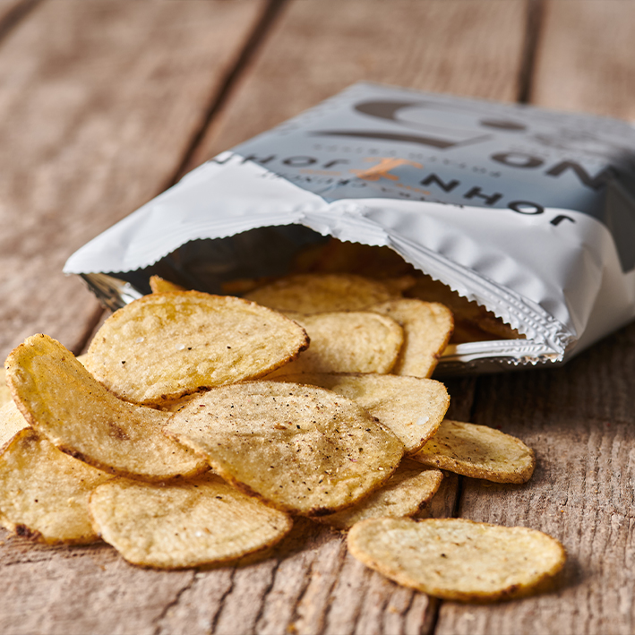 Leckere Crisps mit frisch gestoßenem schwarzen Pfeffer aus Vietnam und feinem Meersalz aus der Niederlande bieten einen kräftigen, intensiven Geschmack. Diese knusprigen Chips sind der perfekte Snack für alle, die es gerne würzig und aromatisch mögen.