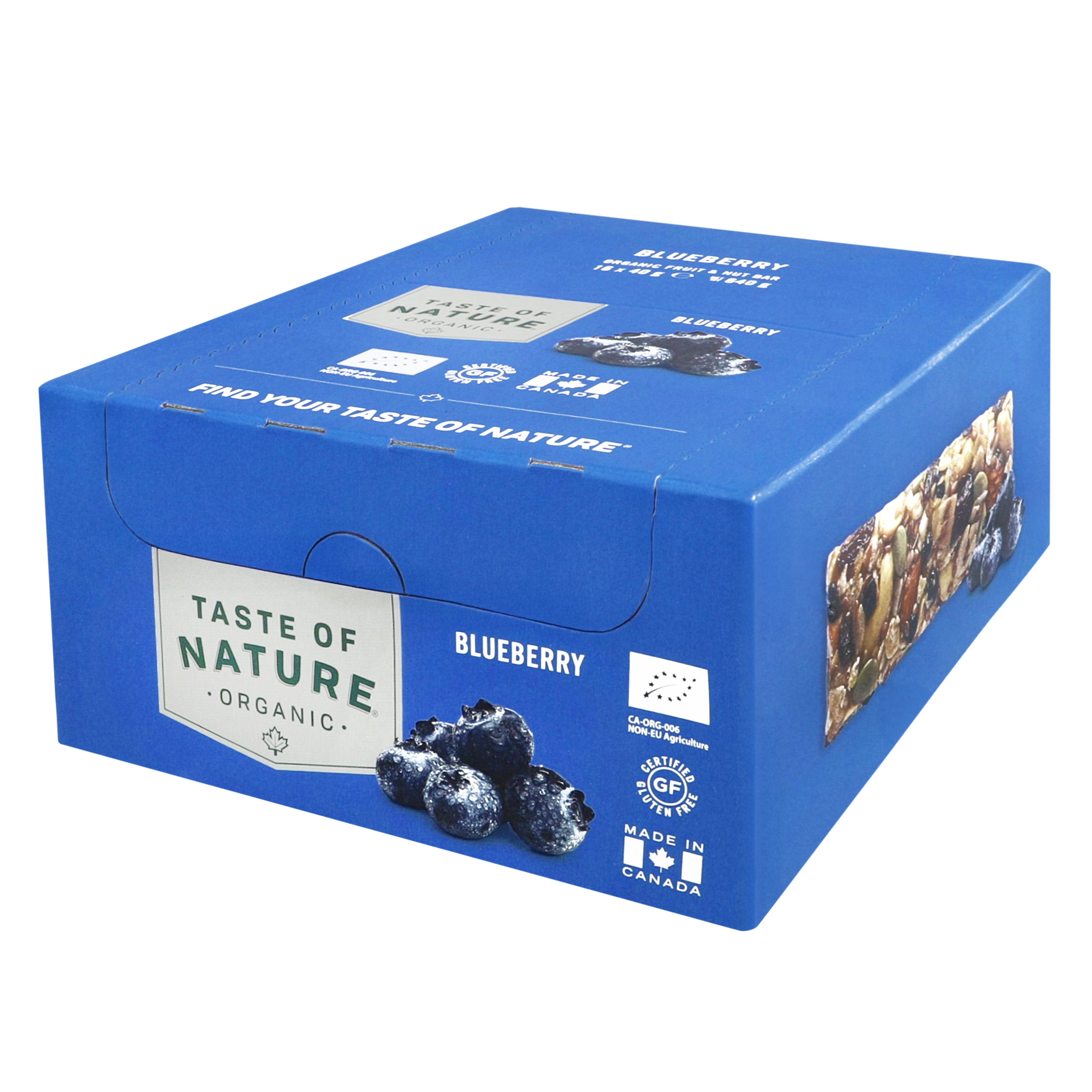 Blaubeeren, Cranberries, Feigen und eine knackige Nussmischung aus Erdnüssen, Kürbiskernen, Mandeln und Leinsamen, veredelt mit Agavensirup und Rosinen. Diese köstlichen Riegel bieten eine perfekte Mischung aus fruchtigen und nussigen Aromen und liefern eine gesunde Portion Energie für unterwegs. Verpackt in einem praktischen Display, sind sie ideal als gesunder Snack für zwischendurch oder als Ergänzung zu einer ausgewogenen Ernährung. Bio-Kontrollstellennr.: CA-ORG-006