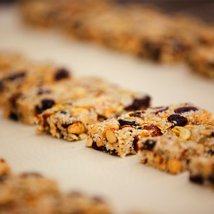 Kernmischung* [Sonnenblumenkerne* (21%), Kürbiskerne* (11%), geschälte Hanfsamen* (10%), Leinsamen* (7%), Chiasamen* (1%)], Agavendicksaft*, MANDELN*(10%), brauner Reissirup*, getrocknete Möhren* (6%), Rosinen* (5%) (Rosinen*, Sonnenblumenöl*), Vollkornknusperreis*, Sonnenblumenölmischung* [Sonnenblumenöl*, Antioxidationsmittel (Stark Tocopherolhaltige Extrakte*, Extrakt aus Rosmarin*)], Zimt*, Meersalz, natürliches Aroma*, Geliermittel (Agar-Agar). *Aus kontrolliert biologischem Anbau. Kann Teile von Kernen und Schalen enthalten.