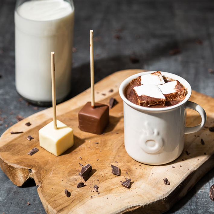 Unter dem Zartbitter-Schokomantel dieser Sticks verbirgt sich eine dunkle, schokoladige Ganache. In heißer Milch eingerührt, verwandelt sich diese Ganache in eine klassische Trinkschokolade, die perfekt für kalte Tage oder zum gemütlichen Ausklang des Tages ist.