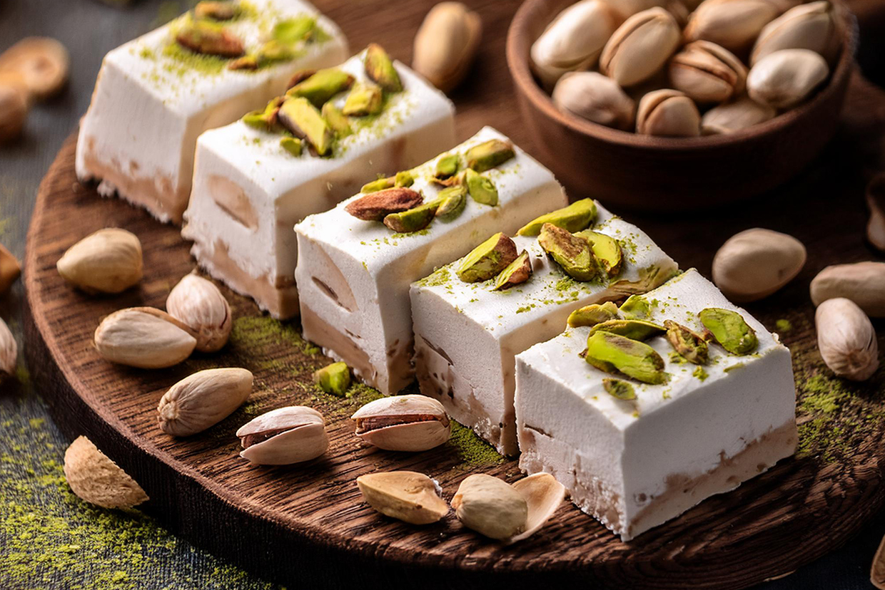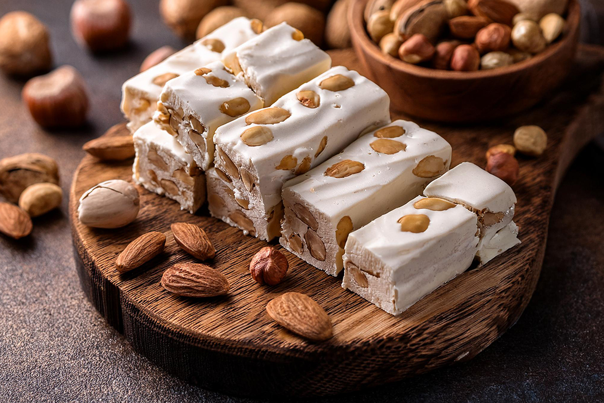 Ein genussvoller Mix aus drei Nougat-Sorten: Dark Chocolate, White Chocolate und Hazelnut & Dark Chocolate. Diese exquisiten Geschmacksrichtungen vereinen sich zu einer samtigen Süße mit nussigen Aromen - ideal für jeden Schokoladenliebhaber.