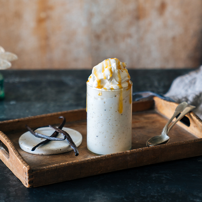 Veredeln Sie Ihre Desserts, Smoothies, Frappés oder heißen Kaffee- und Schokoladenkreationen mit dem verführerischen Toffee Drizzle-Topping. Dieses besondere Highlight wird mit original Devon-Cream hergestellt und sorgt für einen süßen, cremigen Genussmoment auf jedem Ihrer Lieblingsgetränke oder -desserts.