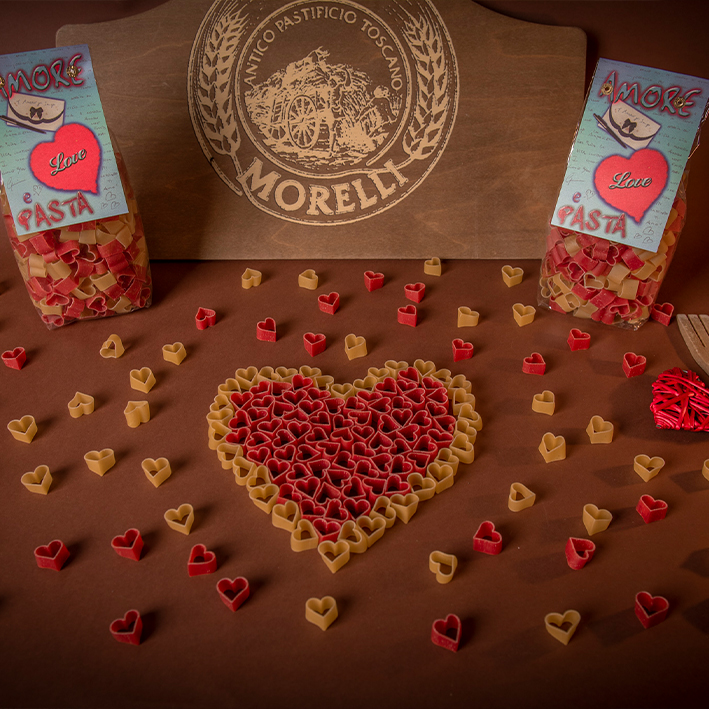 Diese farbenfrohen Hartweizennudeln in Herzform, gefärbt mit Tomatenpulver, sind nicht nur ein optisches Highlight, sondern bringen auch einen vollmundigen Geschmack auf den Teller. Ein Muss für besondere Anlässe und liebevoll angerichtete Gerichte.