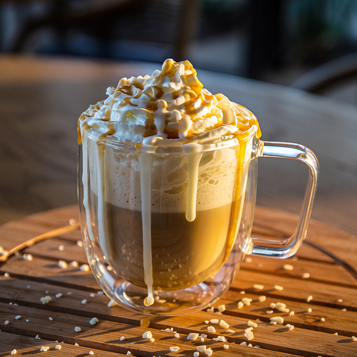Unser White Chocolate Drizzle-Topping verführt mit zart-süßem Geschmack und einer extra cremigen Textur. Ob als stilvolles Finish auf eiskalten Frappés und Smoothies oder als süßer Akzent auf Desserts, heißer Schokolade oder Cappuccino – dieses Topping sorgt für ein elegantes Genusserlebnis mit einem Hauch von weißer Schokolade. Einfach anzuwenden, optisch ein Highlight und geschmacklich ein Traum.
