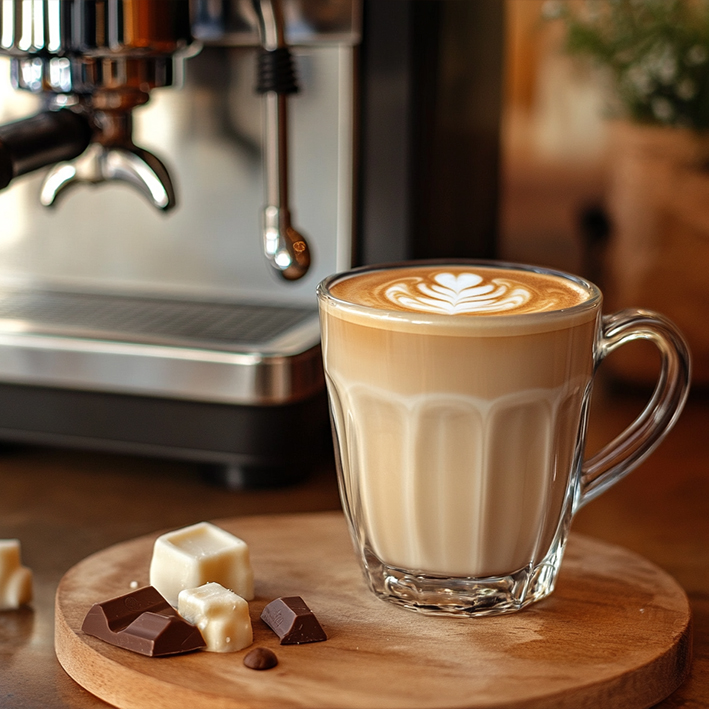Hochwertiger Sirup in der Geschmacksrichtung Weiße Schokolade, speziell entwickelt für Kaffeekreationen. Die süße, cremige Note der weißen Schokolade verleiht jedem Getränk einen luxuriösen Touch.